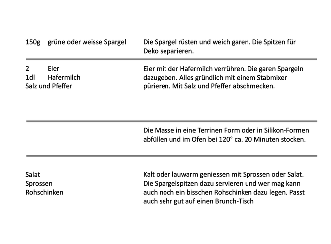 Foodwaste reduziert und eine super Vorspeise oder etwas Leckeres auf dem Brunch-Tisch. Was man mit den Resten von Spargeln feines zaubern kann findest du hier.
