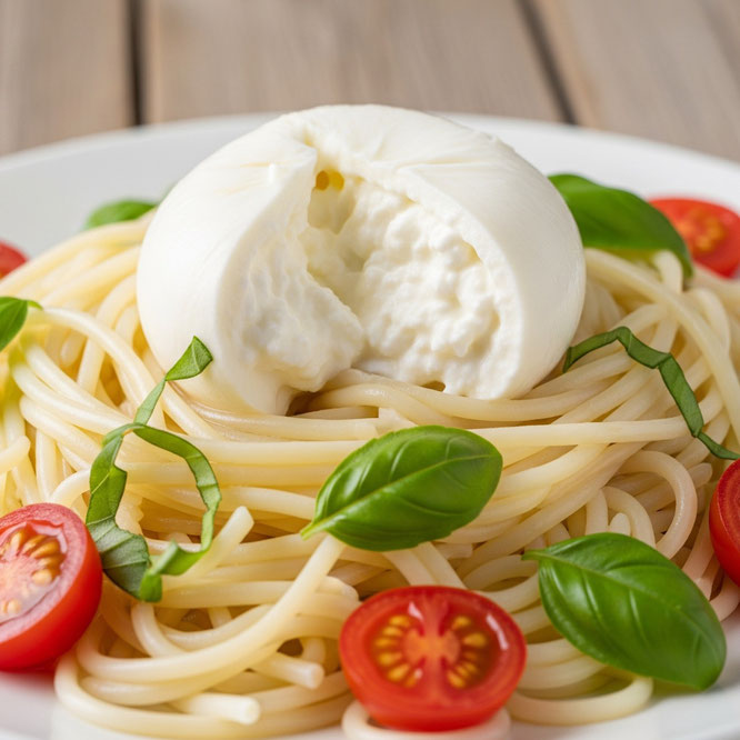 Das Einfache liegt oft so nah. Gerade bei Burrata-Rezepten braucht es meist nur die richtigen Zutaten – der Rest ergibt sich von selbst. Nur eines: Versuche nie, eine Burrata zu kochen. Und bitte auch nicht als Mozzarella-Ersatz auf die Pizza legen und dann in den Ofen schieben. Das geht gründlich schief. Aber kalt, frisch, einfach so über die Pasta – da wird sie zum Gedicht.