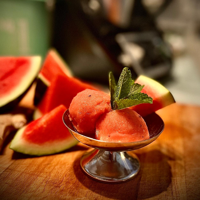 Dieses Wassermelonen-Ingwer-Sorbet hat es in sich, und ich könnte Unmengen davon verzehren. Gesund, ohne Zusatzstoffe, und es sieht so frisch aus, wie es schmeckt. Unbedingt ausprobieren – aber Vorsicht, es macht definitiv süchtig!